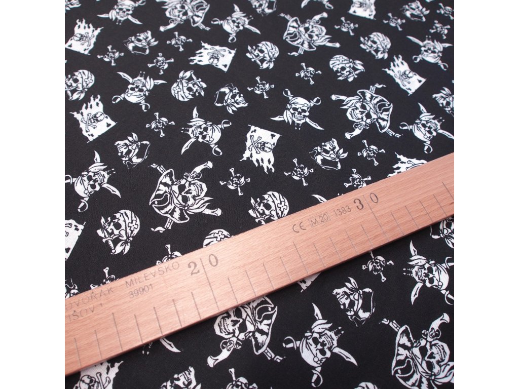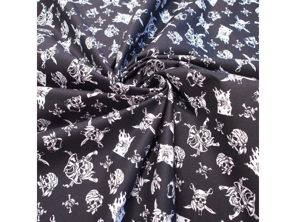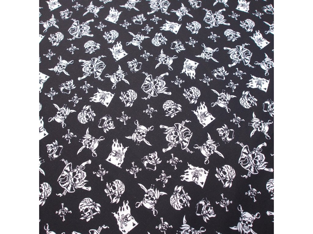 bavlněná látka - černé lebky