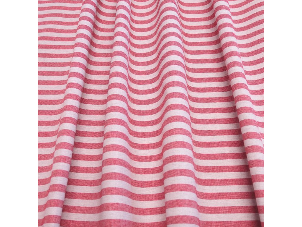 Proužkovaná látka je vyráběna v šíři 140 cm, je vyrobena z materiálu 80% bavlna a 20% polyester.