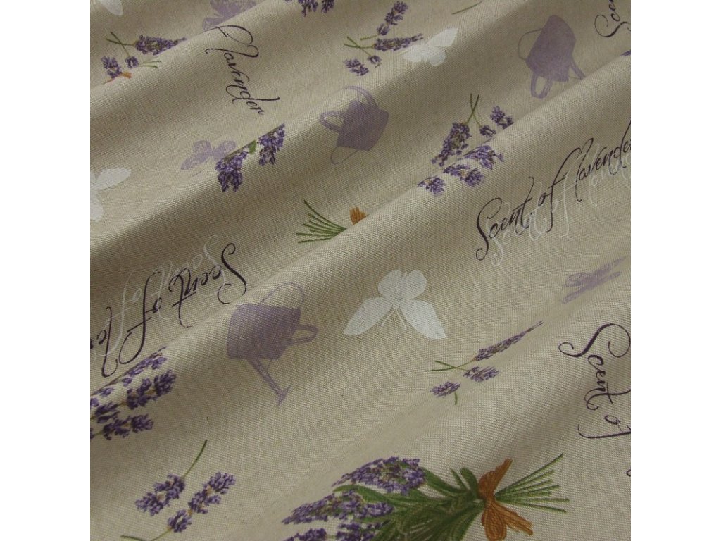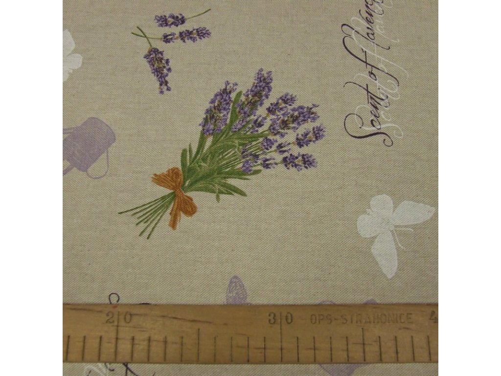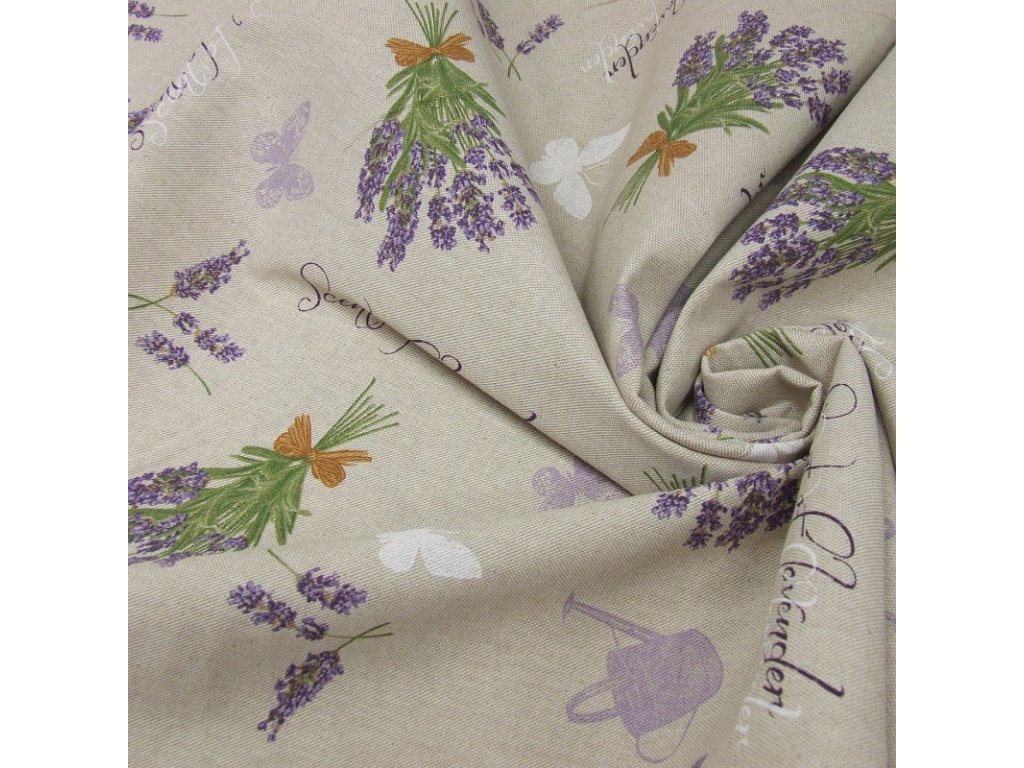 dekorační látka - levandule na režné