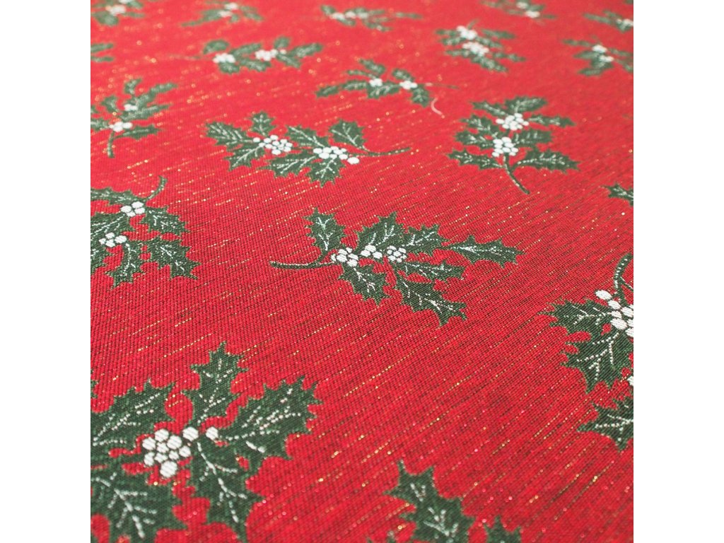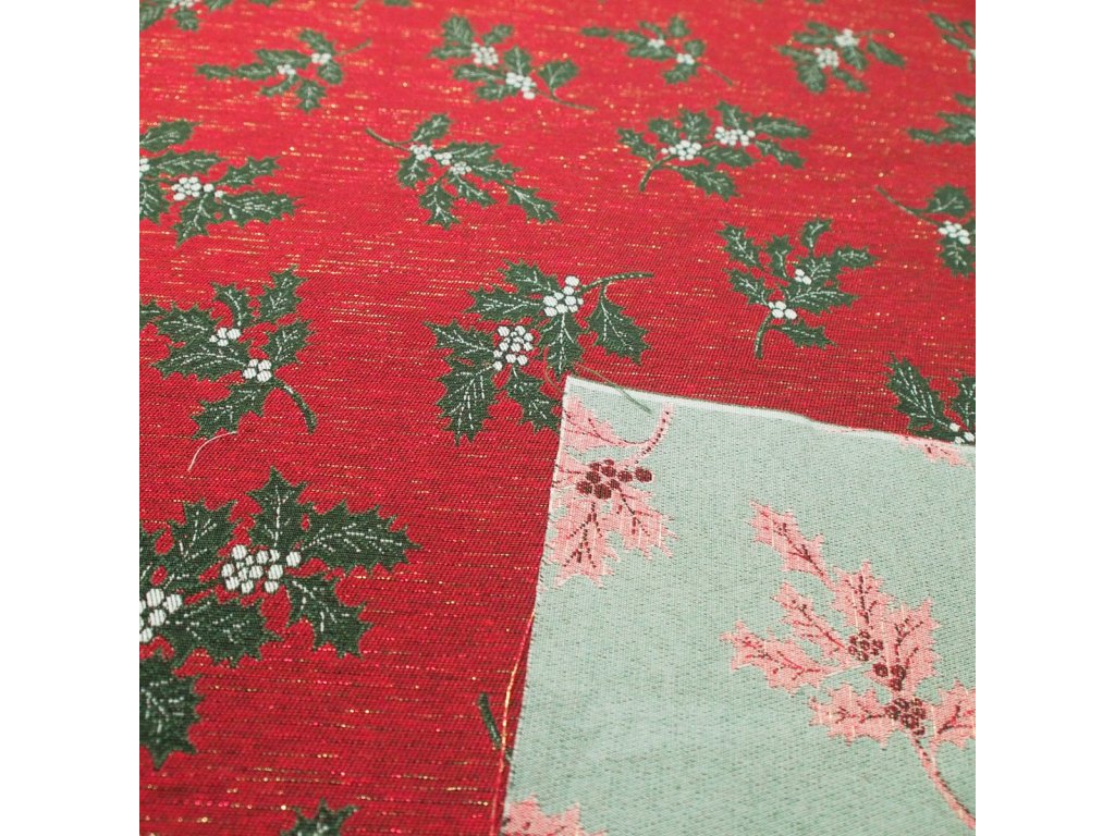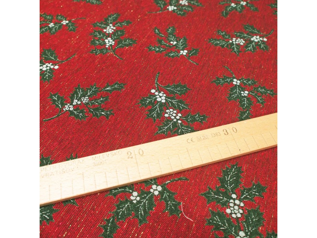 Vánoční látka je vyráběna v šíři 160 cm, je vyrobena z materiálu 60% polyester, 37% bavlna a 3% lurex.